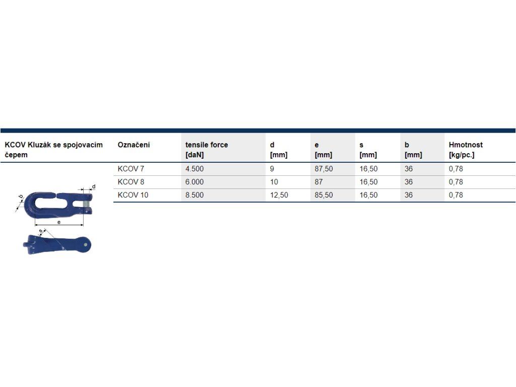 KCOV Kluzák se spojovacím čepem se používá jako kluzný hák na lano navijáku.