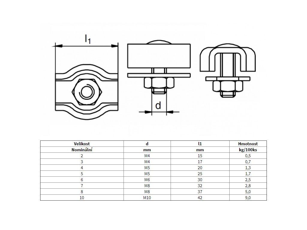 Provedení lanové svorky SIMPLEX s jedním šroubem.