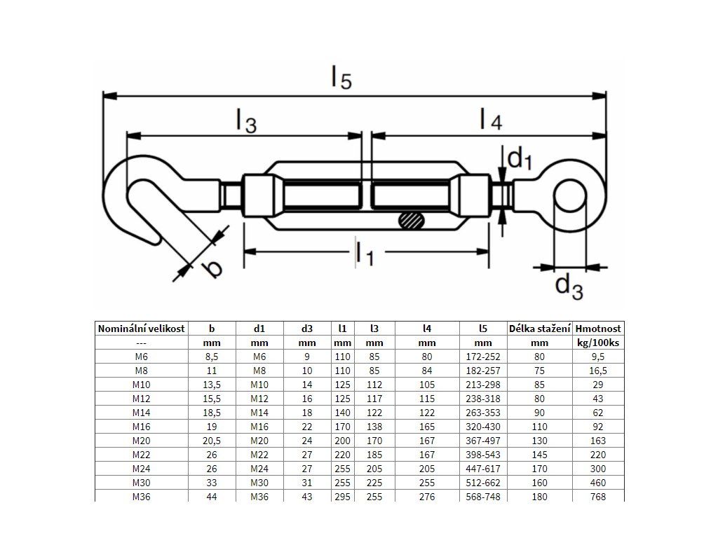 Lanový napínák DIN 1480 pozinkovaný oko+hák
