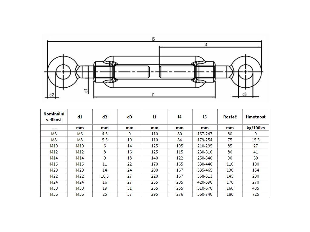 - Napínáky jsou vyrobeny podle normy DIN 1480 a ošetřeny galvanickým pozinkováním. Napínák má středovou matici, která je na obou koncích opatřena opačnými závity (pravý a levý).