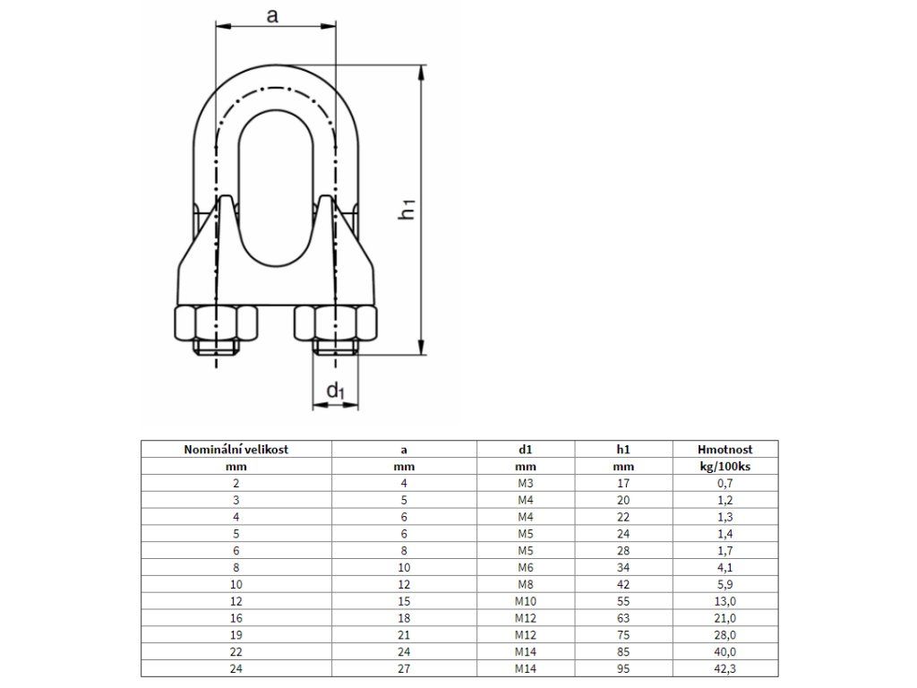 Nerezová lanová svorka.