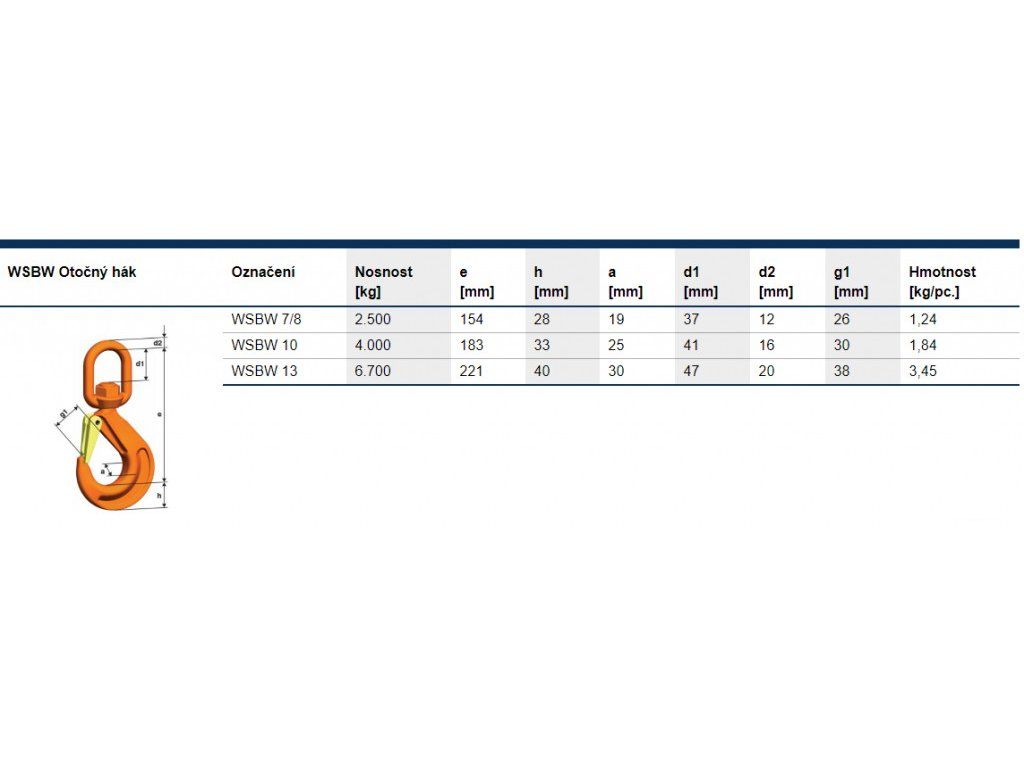 Otočný hák pod zátěží WSBW