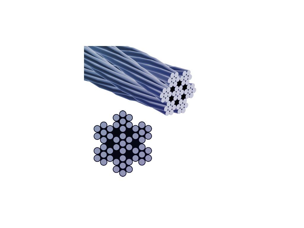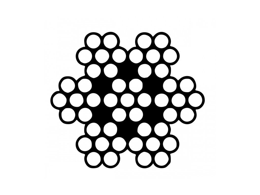 - Šestipramenné nerezové ocelové lano, s konstrukcí 7x7, je tvořeno 7 prameny se 7 dráty