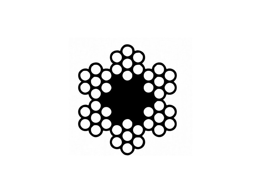 Šestipramenné ocelové lano - konstrukce 6x7M-FC