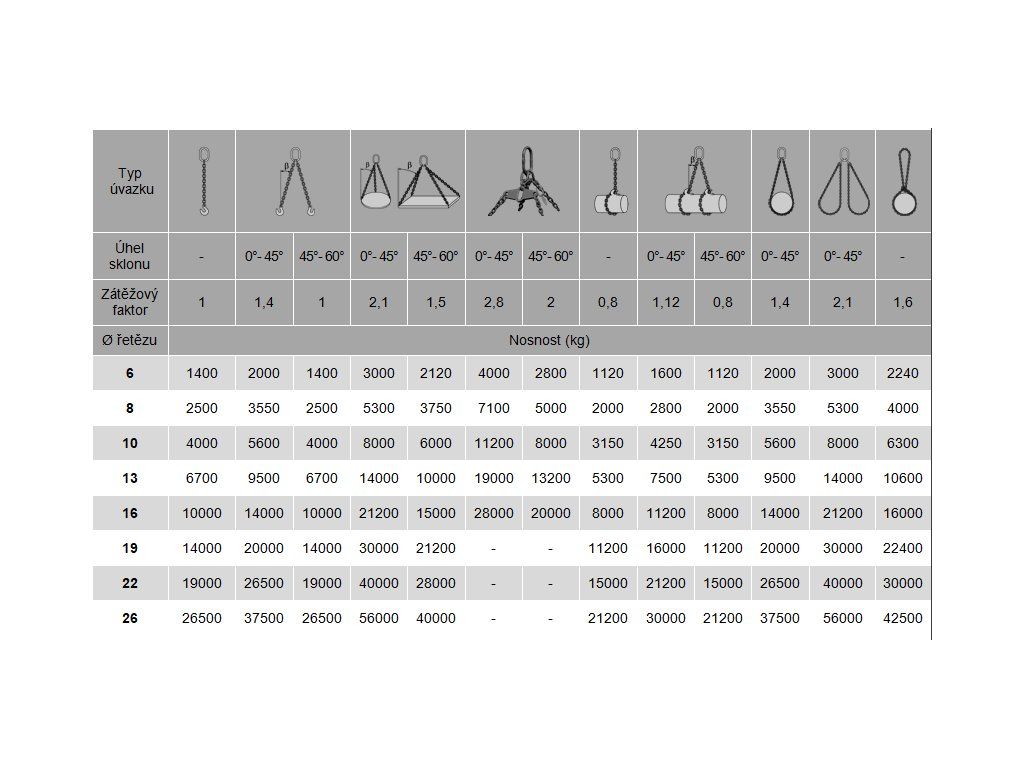 Uvedené řetězy jsou běžnými závěsy. Možnost dodání i v jiných délkách, průměrech a montážních systémech než je zde uvedeno.- vysoce kvalitní řetězy v pevnostní třídě G10